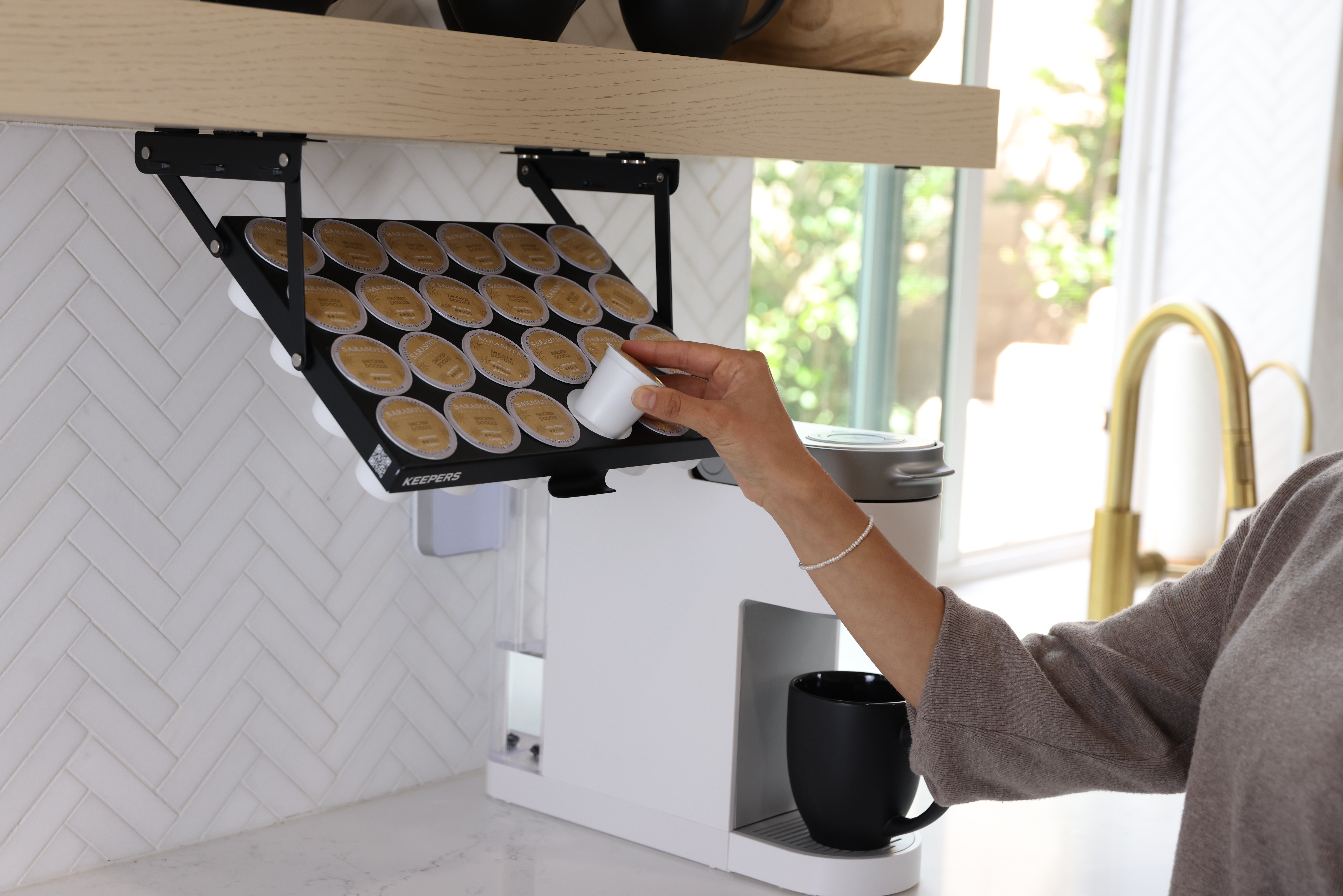 Maximize space with this under-cabinet coffee pod organizer that holds 24 pods, installs in seconds with no tools required, and swings down for easy access. Built from powder-coated steel for durability, it’s perfect for kitchens, RVs, and boats.